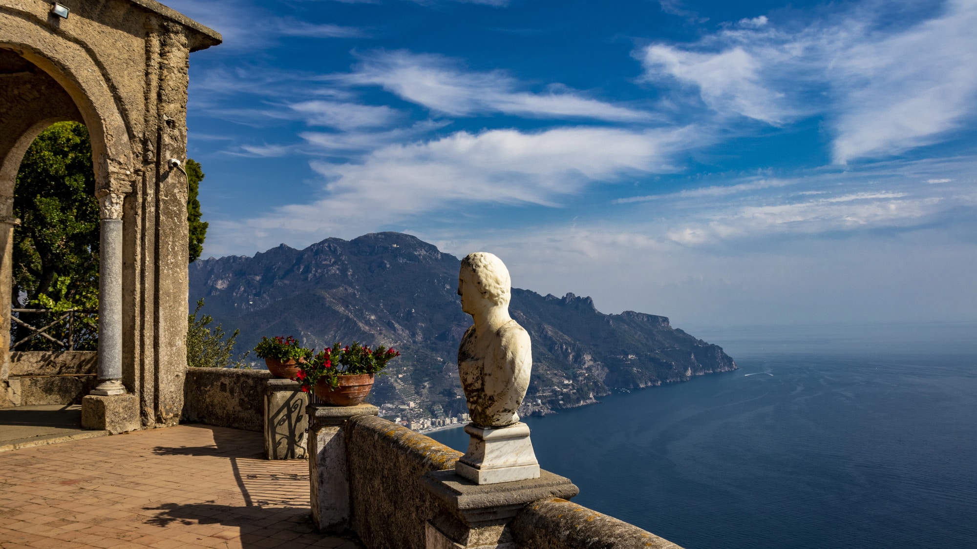 Gå gennem Evighedens Allé (Viale dell’Immenso) og ud til Terrazza dell’Infinito – en terrasse med antikke buster, hvor horisonten bare forsvinder i et blåt ingenting. Det er nok den smukkeste udsigt på hele Amalfikysten.